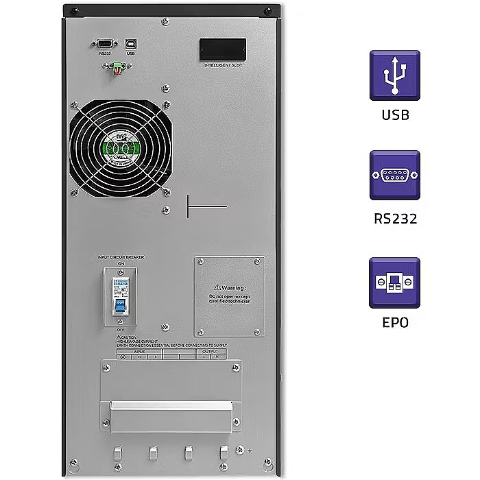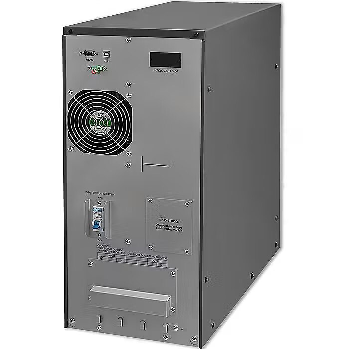 An Online UPS has a voltage that is continuously recycled, in the event of an unexpected drop in the mains voltage, the UPS maintains the operation of the connected device, thanks to the built-in batteries, which are continuously charged. Thus, mains power is only needed to charge the batteries. Permanently connected devices always receive clean energy, without interference from the battery, so the output voltage of the online UPS will always be constant, regardless of the input voltage. The back-up time of the equipment is a few minutes to several minutes, this is the time to save data and safely shut down the equipment.