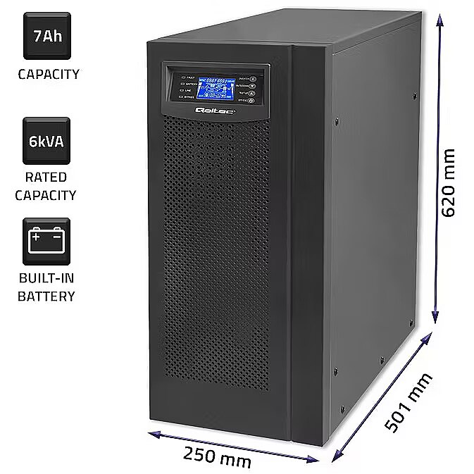 Qoltec 53982 UPS / On-line / Pure Sine Wave / 6kVA / 4.8kW / LCD / USB