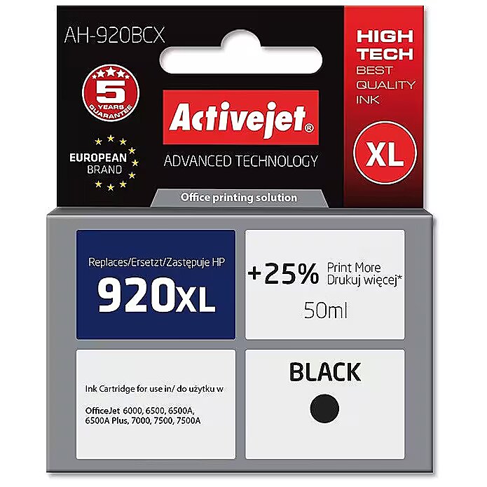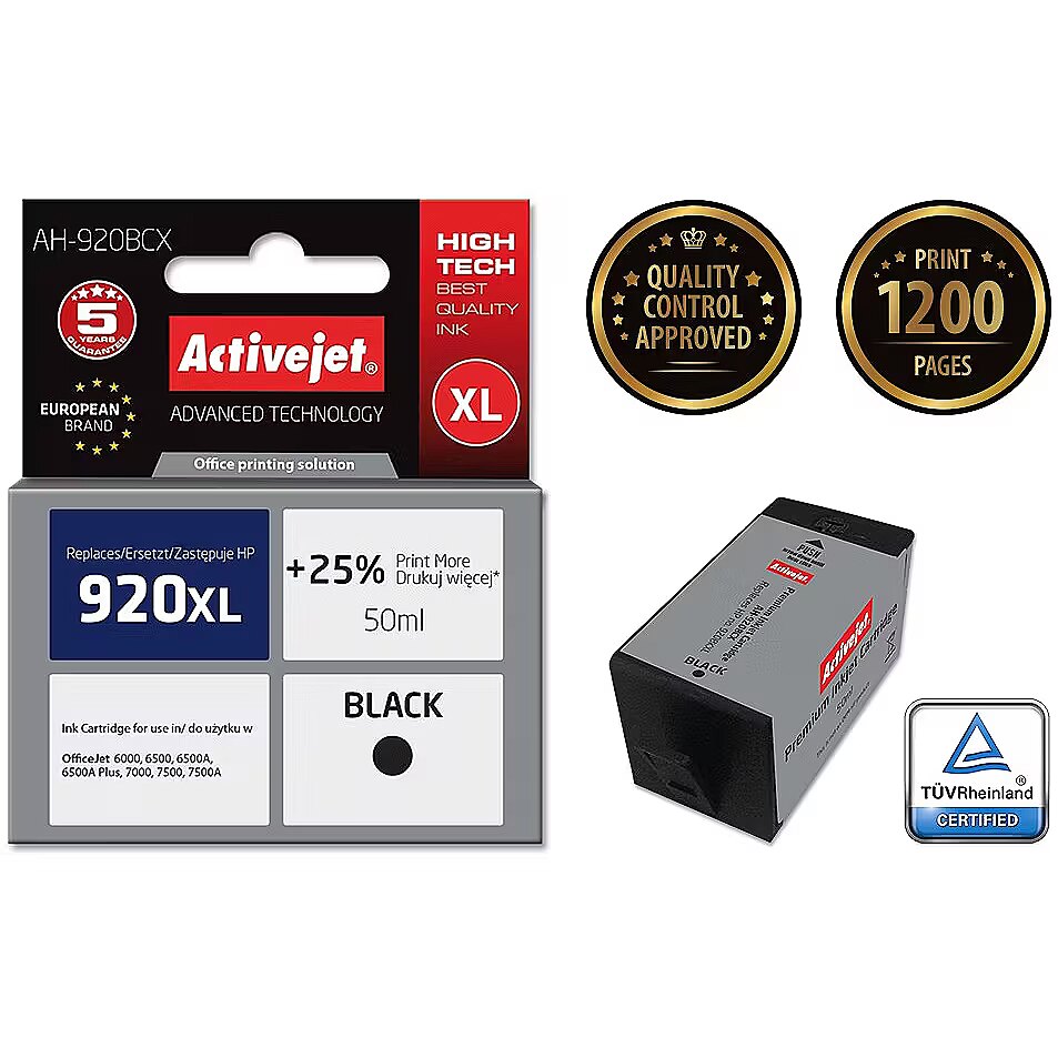 ActiveJet AH-920BCX HP Printer Ink, Compatible with HP 920XL CD975AE; Premium; 50 ml; black. Prints 25% more.