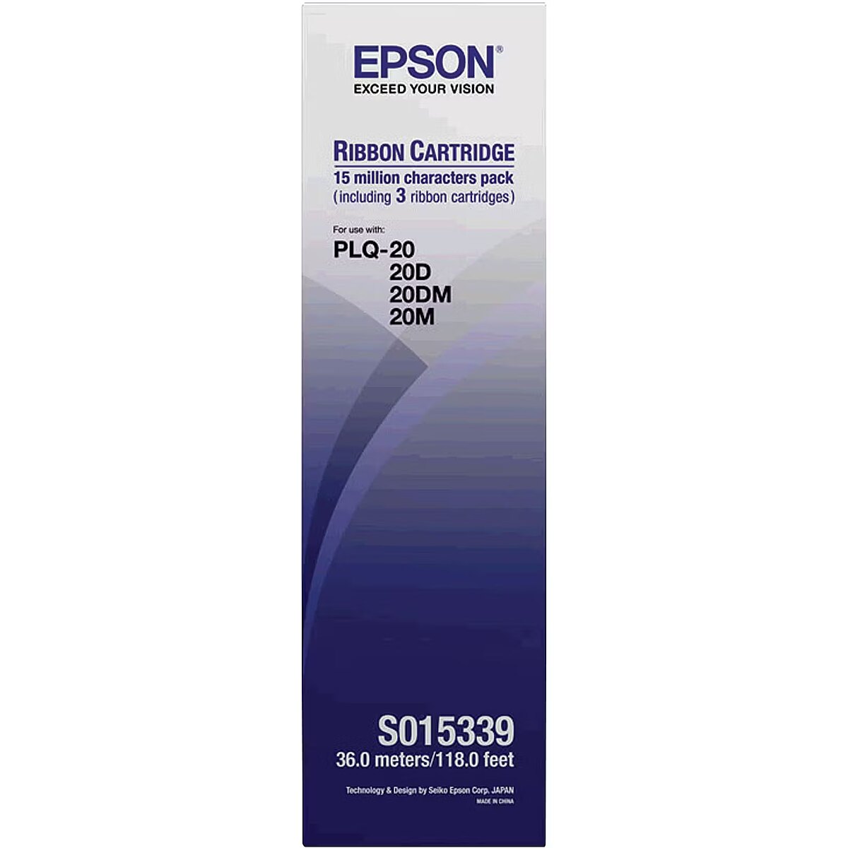 ShortSummaryDescription - Epson SIDM Black Ribbon Cartridge for PLQ-20/22, 3-Pack (C13S015339), - PLQ-30M - PLQ-30 - PLQ-22M - PLQ-22 CS - PLQ-22 - PLQ-20M - PLQ-20DM - PLQ-20D - PLQ-20, Black, Dot matrix, 5000000 characters, Black, China