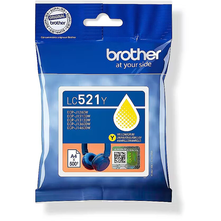 LongSummaryDescription - Brother LC521Y Genuine Ink Cartridge - Yellow. Supply type: Single pack, Colour ink page yield: 500 pages, Printing colours: Yellow, Quantity per pack: 1 pc(s)