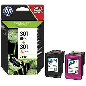 LongSummaryDescription - HP 301 2-pack Black/Tri-color Original Ink Cartridges. Colour ink type: Dye-based ink, Cartridge capacity: Standard Yield, Black ink type: Pigment-based ink, Black ink volume: 3 ml, Supply type: Multi pack, Colour ink page yield: 150 pages, Colour ink volume: 3 ml, Printing colours: Black, Cyan, Magenta, Yellow, Quantity per pack: 2 pc(s), Black ink page yield: 170 pages