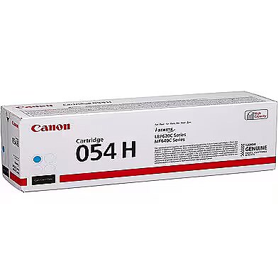 Description - The 054 H Cyan Toner Cartridge is designed to maximise the potential and print quality of compatible i-SENSYS laser printers. This cartridge has a high yield of 2,300 pages and is ideal for busy offices with a demanding workload, holding more than twice the standard 054 cartridge. The all-in-one design and easy installation allow any member of staff to fit a new cartridge when it’s needed and the cartridge itself is fully RoHS compliant and the packaging is fully recyclable.High yield of 2,300 pages is ideal for busy offices with a demanding workloadCanon’s innovative one-component design requires no changing of individual partsCartridge fitting and removal is easy meaning that a technician is not required to replace themDesigned and tailored to the i-SENSYS range, the only cartridge capable of maximising printer lifespan and image qualityDurable and reliable buildFully RoHS compliantEfficient and fully recyclable packaging means no landfill and reduced CO₂Return every toner cartridge to be reused or recycled. It's free, easy and environmentally friendly