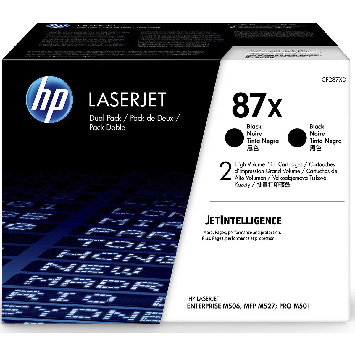 LongSummaryDescription - HP 87X 2-pack High Yield Black Original LaserJet Toner Cartridges. Black toner page yield: 36000 pages, Printing colours: Black, Quantity per pack: 2 pc(s)