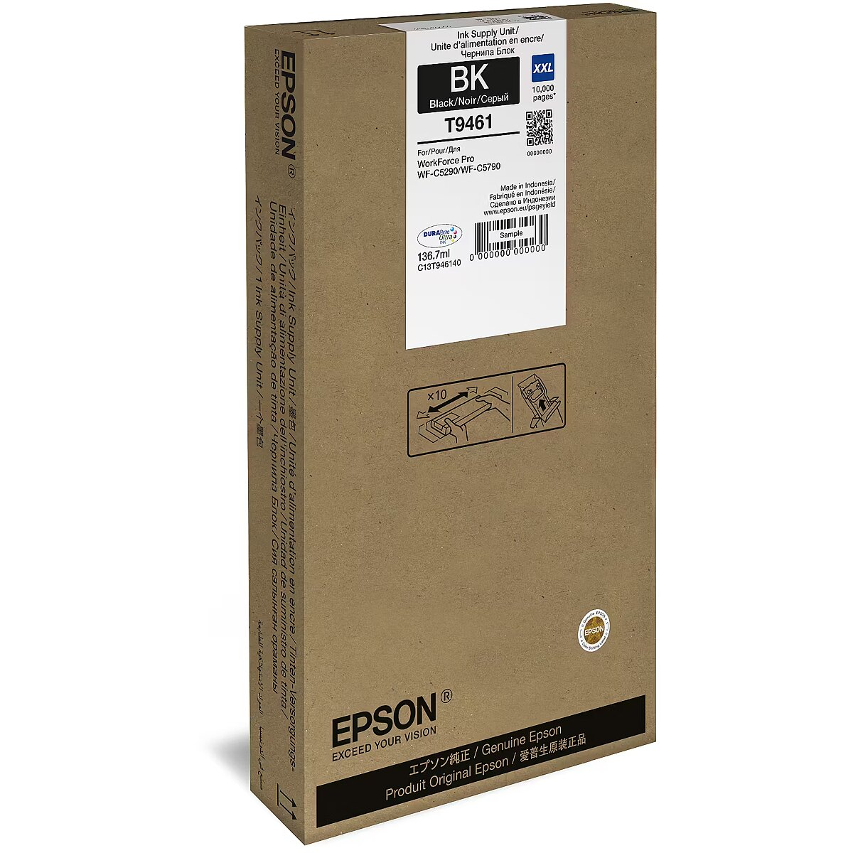 ShortSummaryDescription - Epson WF-C5x90 Series Ink Cartridge XXL Black, Extra (Super) High Yield, Black, Pigment-based ink, 136.7 ml, 1 pc(s), 10000 pages