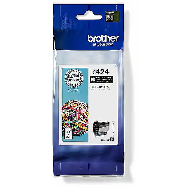 LongSummaryDescription - Brother LC424BK. Supply type: Single pack, Printing colours: Black, Quantity per pack: 1 pc(s), Black ink page yield: 750 pages