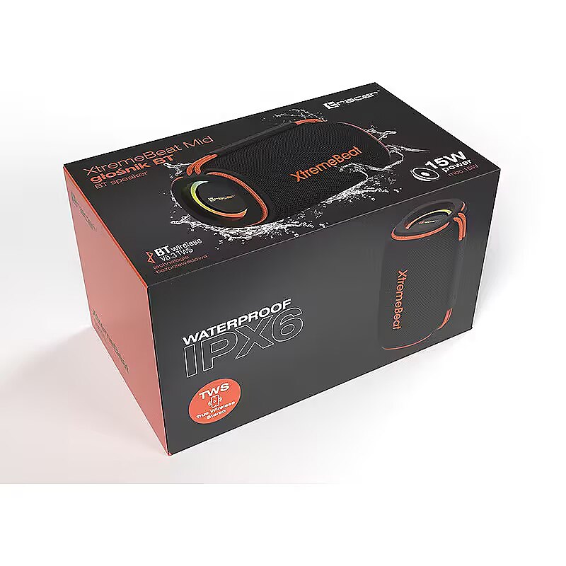 Description - TRACER XtremeBeat Mid TWS Bluetooth RGB Black   Experience even more powerful sound and modern design! The TRACER XtremeBeat Mid wireless speaker is a larger version of the Lite model, designed for those who demand superior sound quality and performance. Whether you're at home, at a party, or outdoors, this speaker delivers robust sound and impressive RGB lighting that will bring every moment to life.   Power: 15W Wireless Technology: Bluetooth 5.3 Water Resistance: IPX6 Inputs: AUX, MicroSD, USB-A Flash Drive Fast Charging Port: USB-C RGB Lighting Battery Capacity: 2 x 1200 mAh Powerbank Functionality Playback Time: Up to 6 hours   15W Power