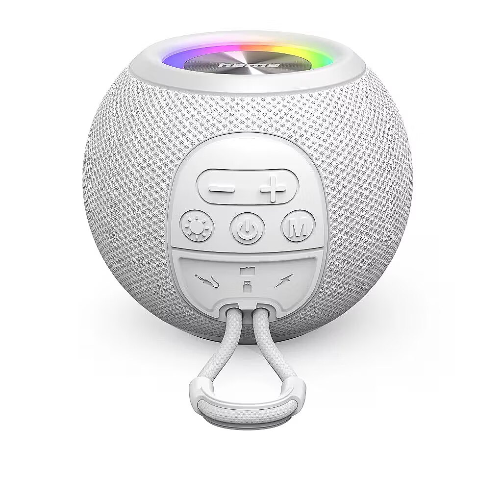LongSummaryDescription - Hama 00188238. RMS rated power: 5 W. Connectivity technology: Wired & Wireless, Bluetooth profiles: A2DP, AVCTP, HFP, HSP, L2CAP, Bluetooth range: 10 m. Product type: Mono portable speaker, Product colour: White, Product design: Ball. Recommended usage: Universal, Compatible memory cards: MicroSD (TransFlash). Battery type: Built-in battery, Battery technology: Lithium-Ion (Li-Ion), Battery capacity: 1200 mAh