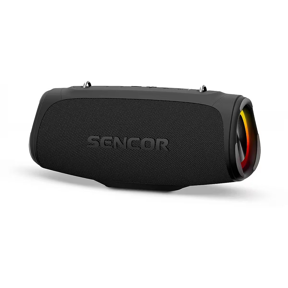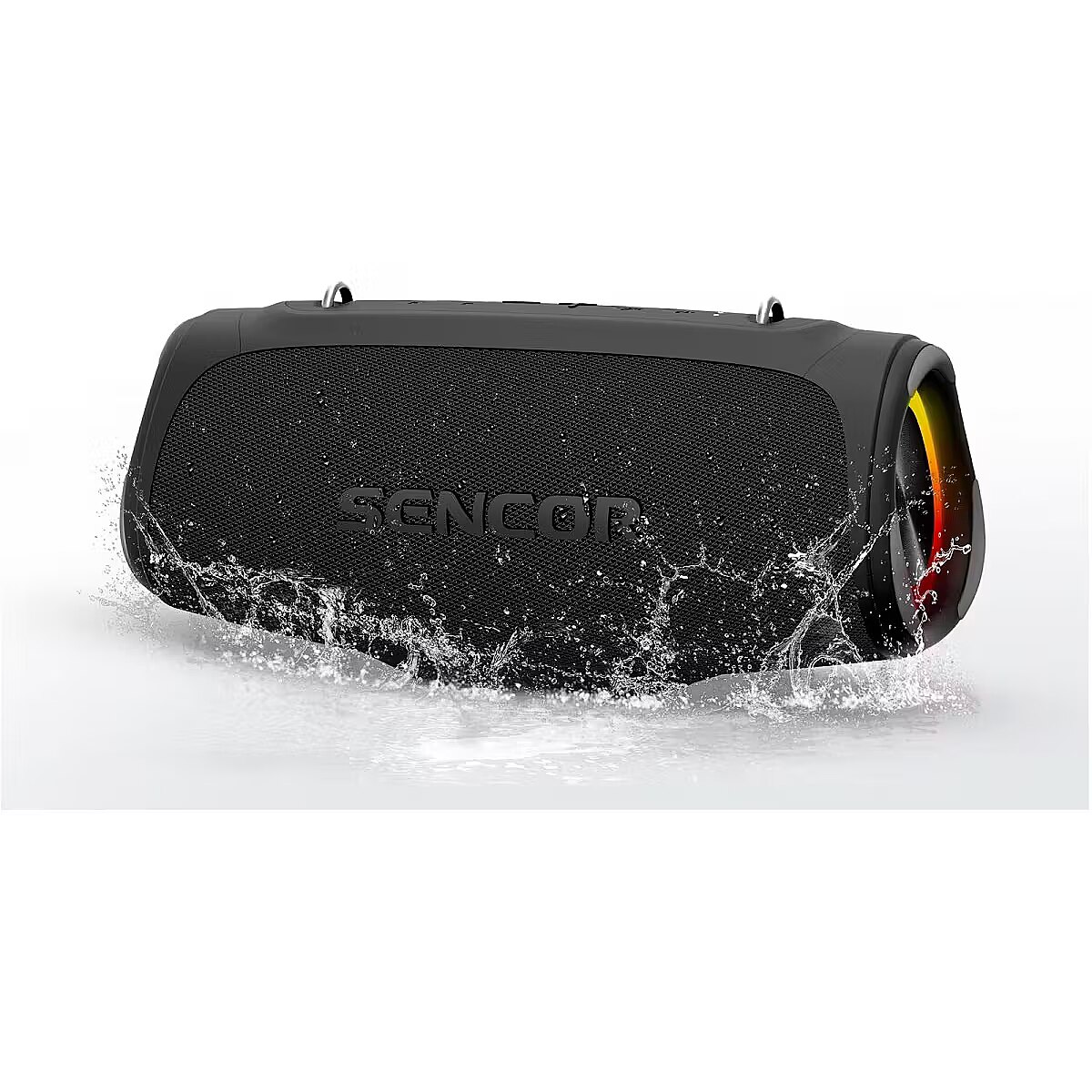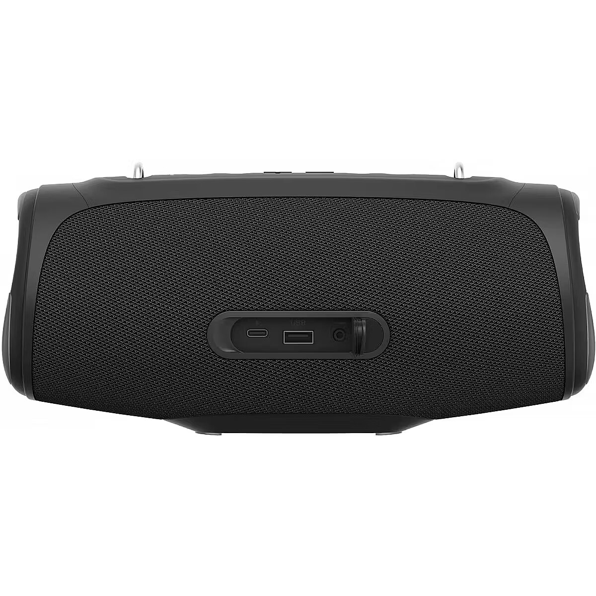 Other features - Właściwości Wodoodporny głośnik o klasie szczelności IPX7 Osłona głośnika z tkaniny premium Funkcja transmisji z maksymalnie 99 podłączonymi urządzeniami Oświetlenie LED głośnika Wskaźnik LED naładowania baterii Przycisk BASS BOOST (EQ) Dźwięk: Maksymalna moc głośnika 80 W (Opór: 4 ) 4 głośników + 2 promienniki pasywne Pasmo przenoszenia: 50 Hz 20 kHz Całkowite zniekształcenia harmoniczne: 1% Wejścia: Bluetooth Audio 5.3 Wejście audio Aux (gniazdo stereo 3,5mm) Odtwarzanie z USB Funkcja powerbanku 5 V/1 A Inne: Wbudowany akumulator: 7 200 mAh Li-Ion (26,6 Wh) Czas odtwarzania wynosi do 12 godzin (przy 50% głośności) Ładowanie USB-C (obsługa PD) Czas ładowania maks. 2,5 godziny