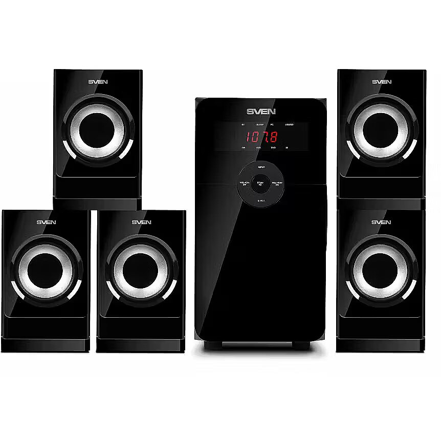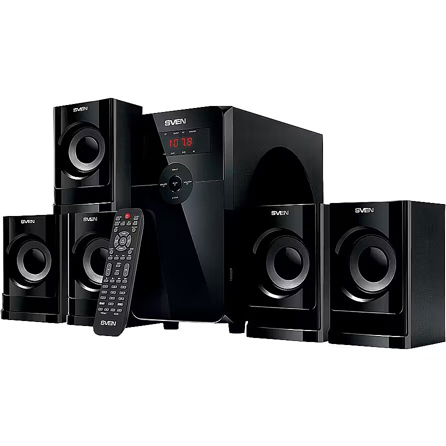 ProductDescription - Speakers SVEN HT-201, black (80W, Bluetooth, FM, USB/SD, Display, RC unit)