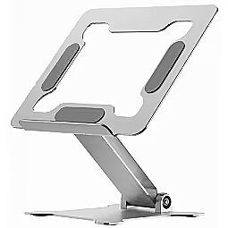 Description - Foldable notebook riser stand, silver Ergonomic design with adjustable height for optimal viewing angle Compact design, but suitable for notebooks up to 15.6" Can be folded completely flat for easy storage and transport Foldable aluminum notebook riser stand with stepless height adjustment Adjustable height allows to position the screen for an optimal viewing angle Notebook tray with open structure offers good ventilation and increased air circulation for notebooks Safety ledge and silicon pads keep the notebook secure and stable Practical folding mechanism enables space saving storage or transport