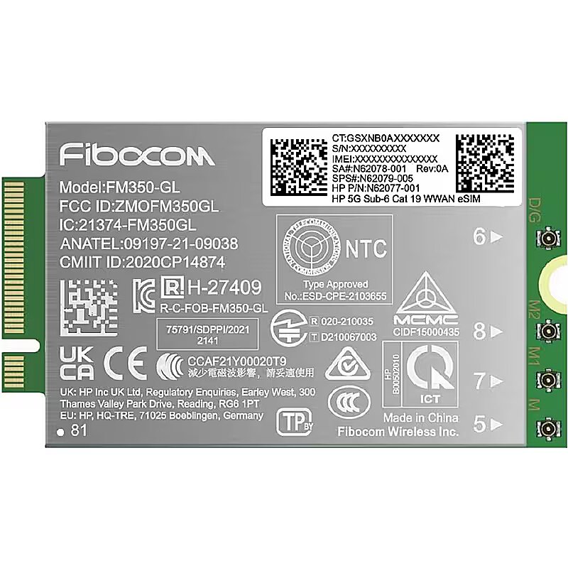 ProdDesc - HP 5G Modem m.2 WWAN 4G/5G Sub-6 GHz FM350-GL Mobile Broadband Cellular (compatible with WWAN-ready EliteBook 830 835 840 845 860 865 1040 G11, x360 G11, ZBook Firefly Fury 14 16 G11 G11A)