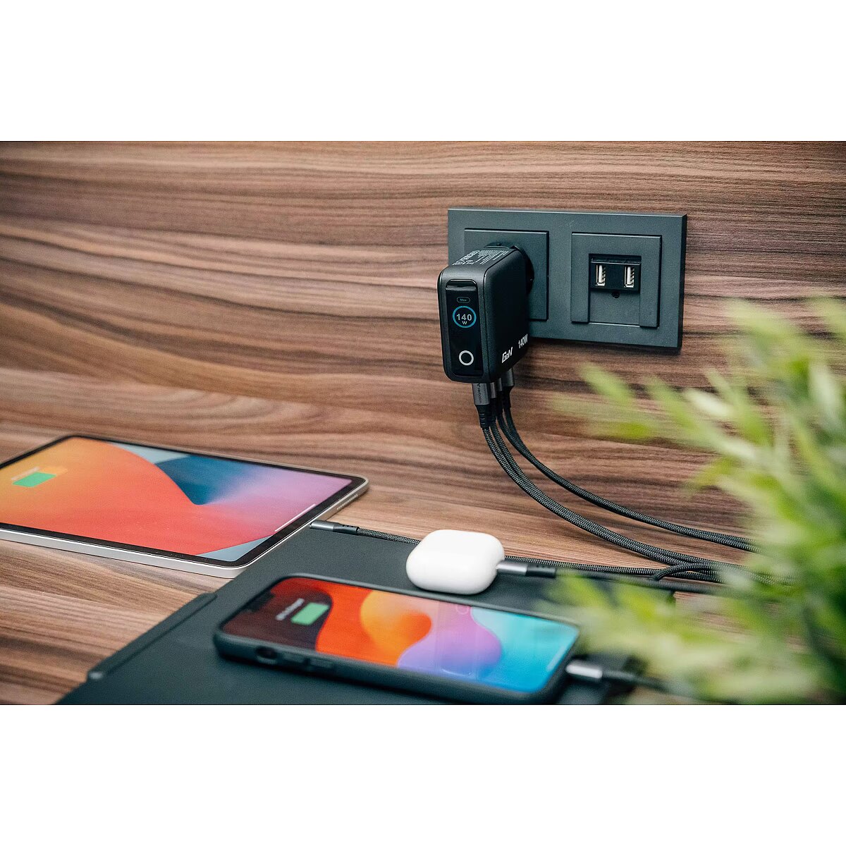 LongProductName - 4x USB, GaN, PPS, Quick Charge 3.0, TFT, 2x USB-C PD 3.0 - 140 W, 1x USB-C PD 3.0 - 40 W, 1x USB-A QC 3.0 - 30 W, max. 140 W, 340 g