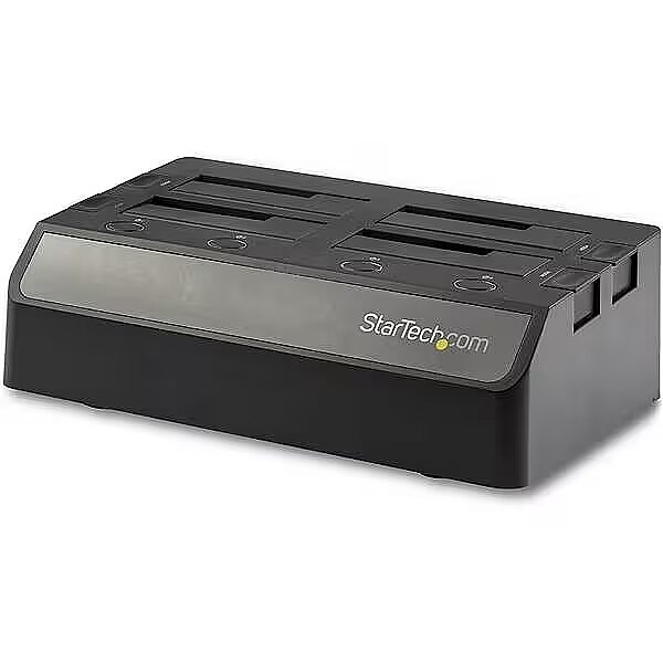 LongDesc - External SSD/HDD Docking Station | USB 3.2 Gen 2 (10 Gbps) to SATA I/II/IIIThis 4-bay SATA HDD docking station lets you access up to four solid-state drives or hard drives simultaneously over USB 10Gbps, and hot swap drives with ease. Ideal for IT professionals, the docking station provides large data capacity and fast file transfers, helping you manage your workflow more efficiently.Save time accessing and managing your dataWhen you're managing a large number of drives, the HDD/SSD docking station saves you time. Quickly dock and swap your drives for disk imaging, data recovery from failing drives, data backups, or other tasks.The hard drive docking station also has SMART support, for accessing important drive information such as hours in use, number of power cycles, and disk health.Fast data transfersWith USB 3.2 Gen 2, the HDD docking station lets you leverage the high performance of the latest SSDs and hard drives, while alleviating bottlenecks in your data transfers.Convenient compatibilityThe hard drive docking station includes a USB Type-C cable, for connecting to USB-C equipped laptops and devices, and a USB Type-A cable, for backward compatibility with your existing USB 3.0, 2.0 and 1.x devices.The docking station also works with 2.5" and 3.5" IDE hard drives, mSATA drives and M.2 drives using a compatible StarTech.com adapter:IDE hard drives: Use StarTech.com adapter SAT2IDEADP SATA to 2.5in or 3.5in IDE Hard Drive Adapter for HDD DocksmSATA drives: Use StarTech.com adapter SAT32MSAT257 mSATA SSD to 2.5in SATA Adapter ConverterM.2 drives: Use StarTech.com adapter SAT32M225 M.2 NGFF SSD to 2.5in SATA Adapter Converter