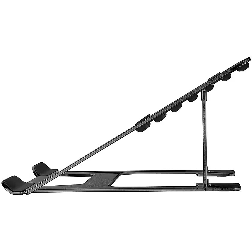 Description - The Neomounts by Newstar NSLS085BLACK is a universal stand for laptops from 10" up to 17", with a maximum weight capacity of 5 kg. The stand has six different height positions and a ultra-slim folding design. The lightweight, compact design makes the stand ideal to take with you wherever you want. The open configuration ensures good ventilation of the laptop and the anti-skid silicon pads and safety ledge stopper ensure solid positioning.