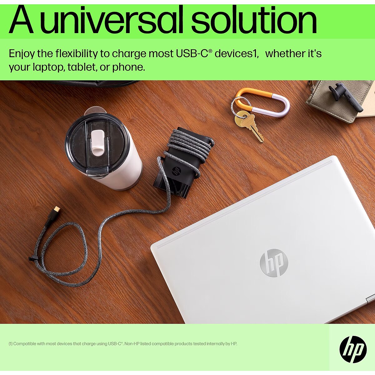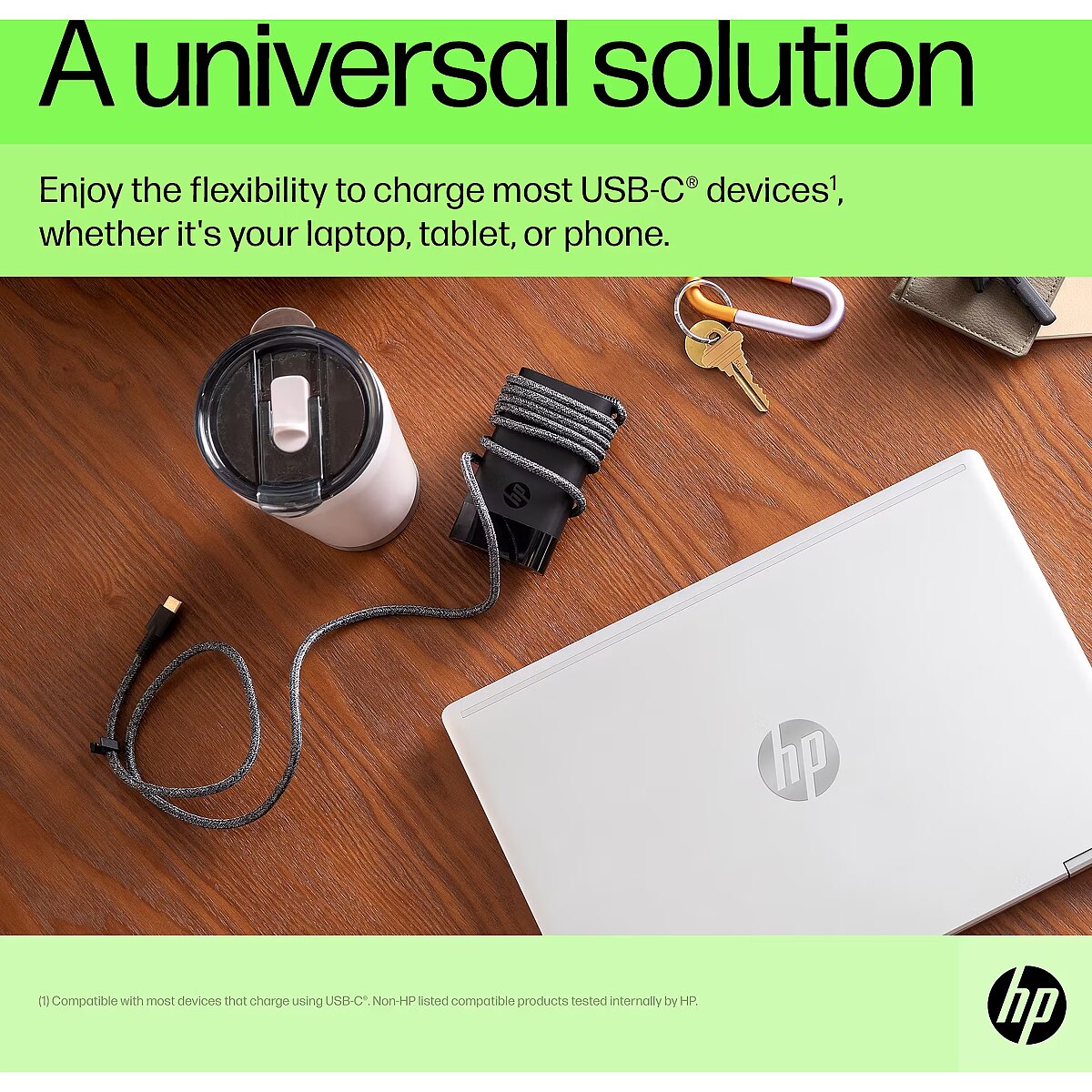 LongDesc - Charge your WorldCharge most USB-C® devices with just one compact charger. The HP 65W USB-C Laptop Charger provides up to 65W of power, enough for almost any USB-C® device.