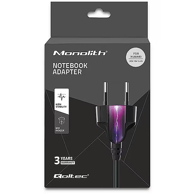 When it comes to power supplies, reliability is crucial. Select a Qoltec power adapter dedicated to Huawei laptops. It is made of the highest quality materials, and the technologies used in it allow for low energy consumption and high efficiency. Package contents power supply with 4.0*1.7 plug and velcro to organize the cable, thanks to which you can adjust the length of the cable.