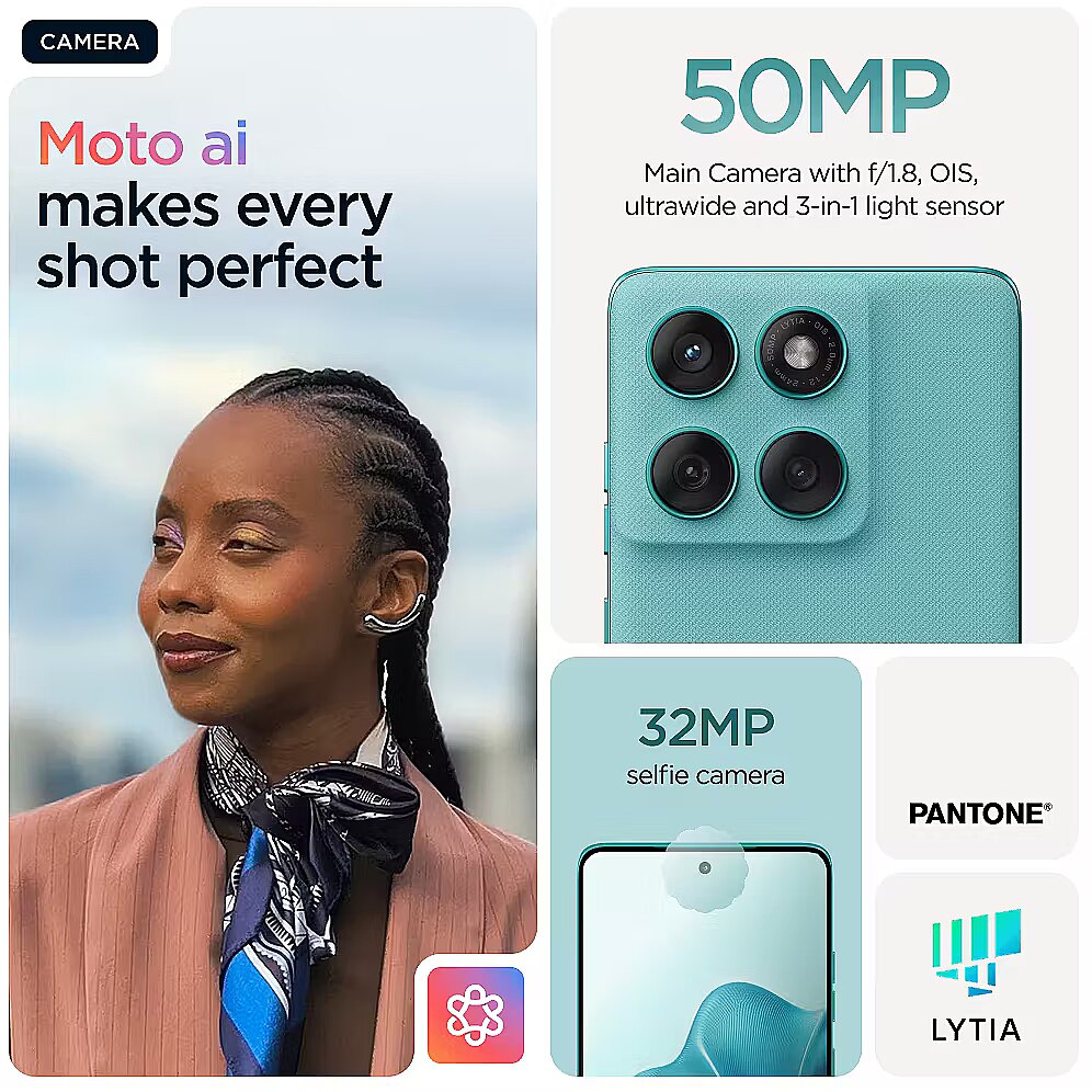 ShortSummaryDescription - Motorola edge 60 fusion, 16.9 cm (6.67"), 8 GB, 256 GB, 50 MP, Android 15, Turquoise