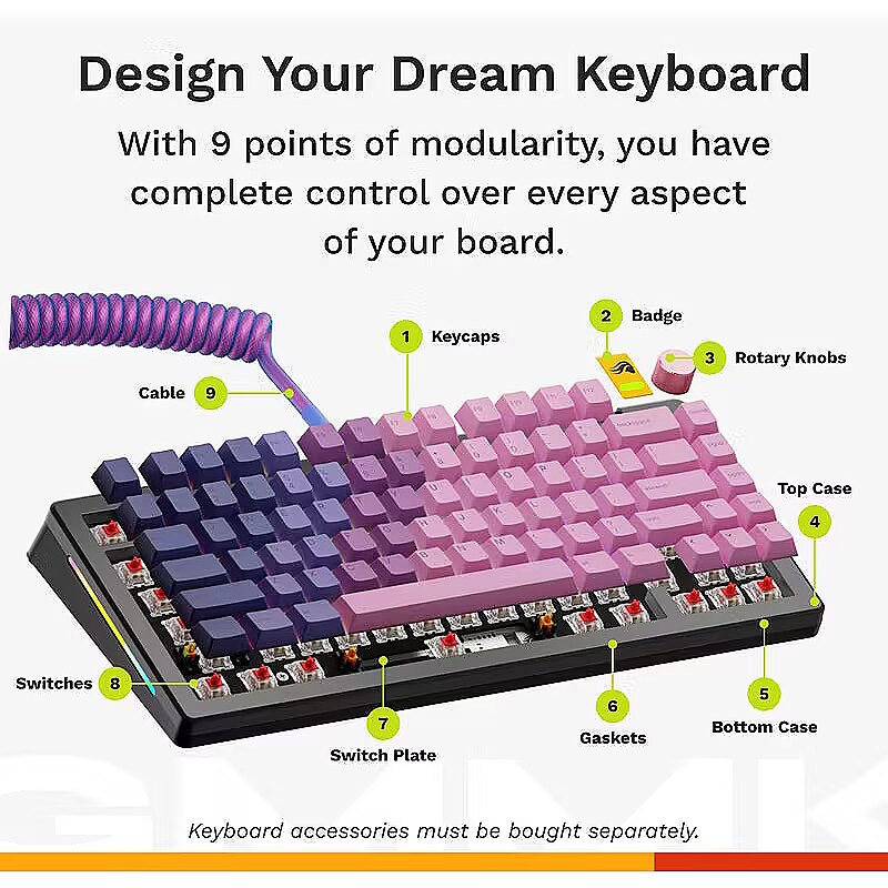 LongDesc - The world’s most customizable wireless gaming keyboard capable of over 1 billion possible configurations, offering gamers complete control over every aspect of their experience: gaming performance, typing experience, and aesthetics.
