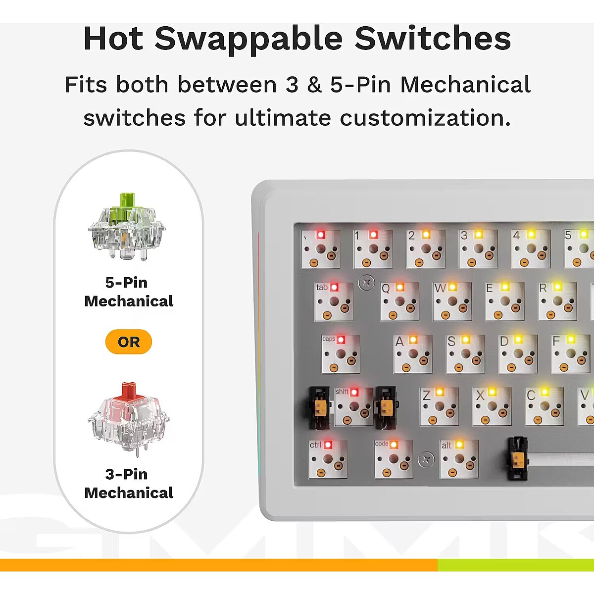 LongProductName - Glorious Gaming - GMMK 3 Custom Mechanical Gaming Keyboard with Knob, Compact 65%, Modular Gasket System, Doubleshot PBT Keycaps, Aluminum Switch Plate, Hotswap 3 & 5-pin Switches, ANSI (White)
