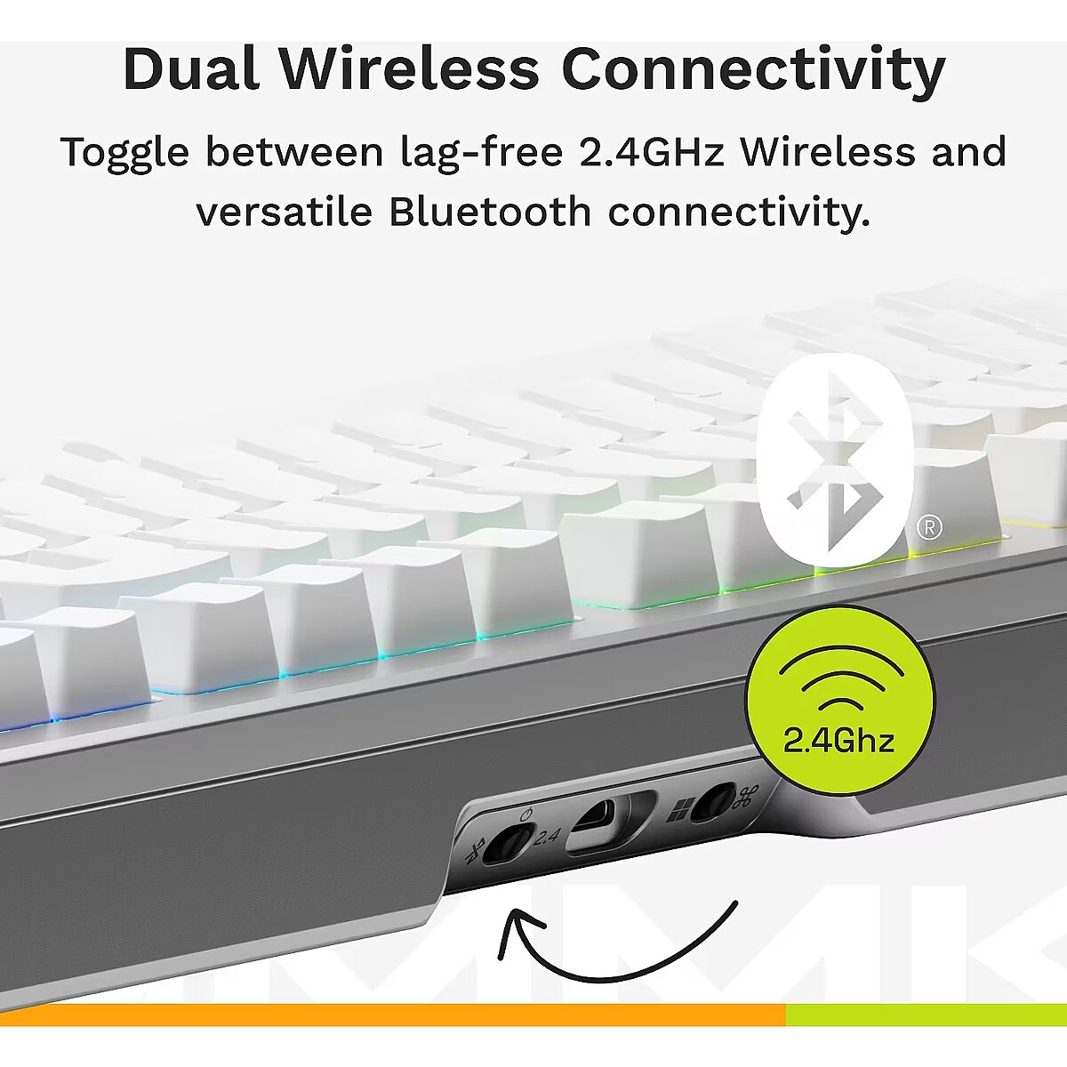 ShortSummaryDescription - Glorious Gaming GMMK 3 PRO 75% Prebuilt Wireless Silver - US, Wired & Wireless, USB + RF Wireless + Bluetooth, Mechanical, QWERTY, RGB LED, Silver