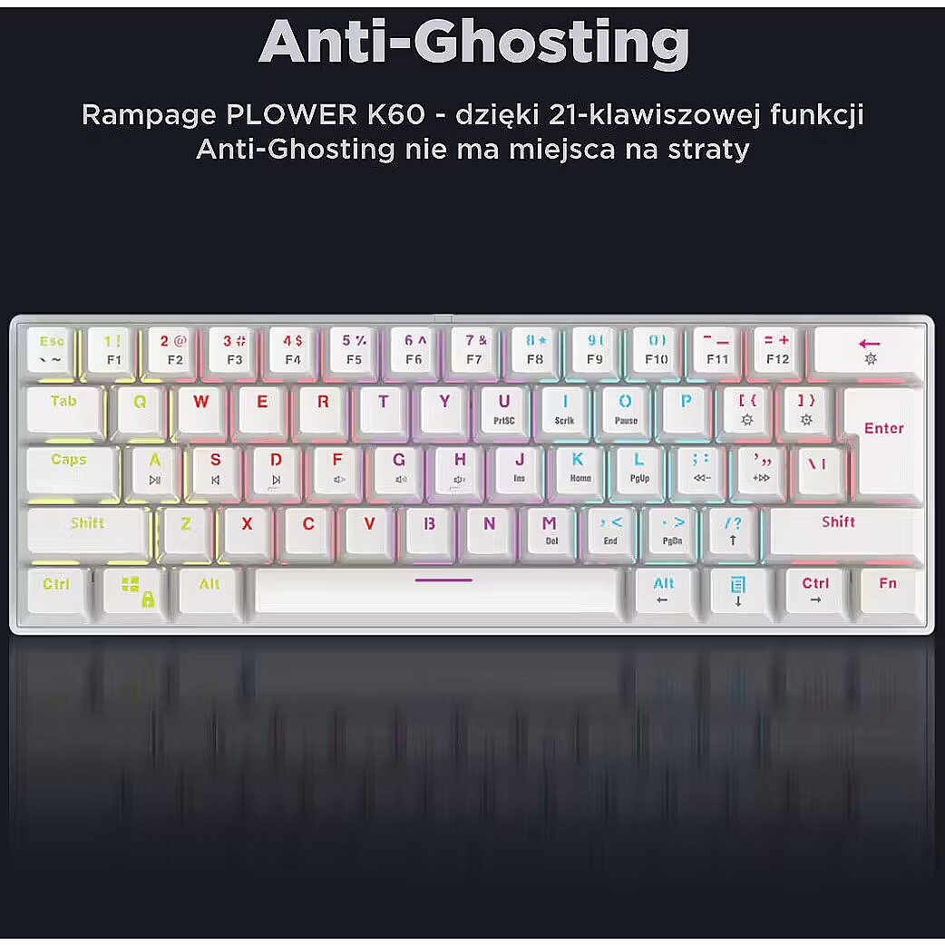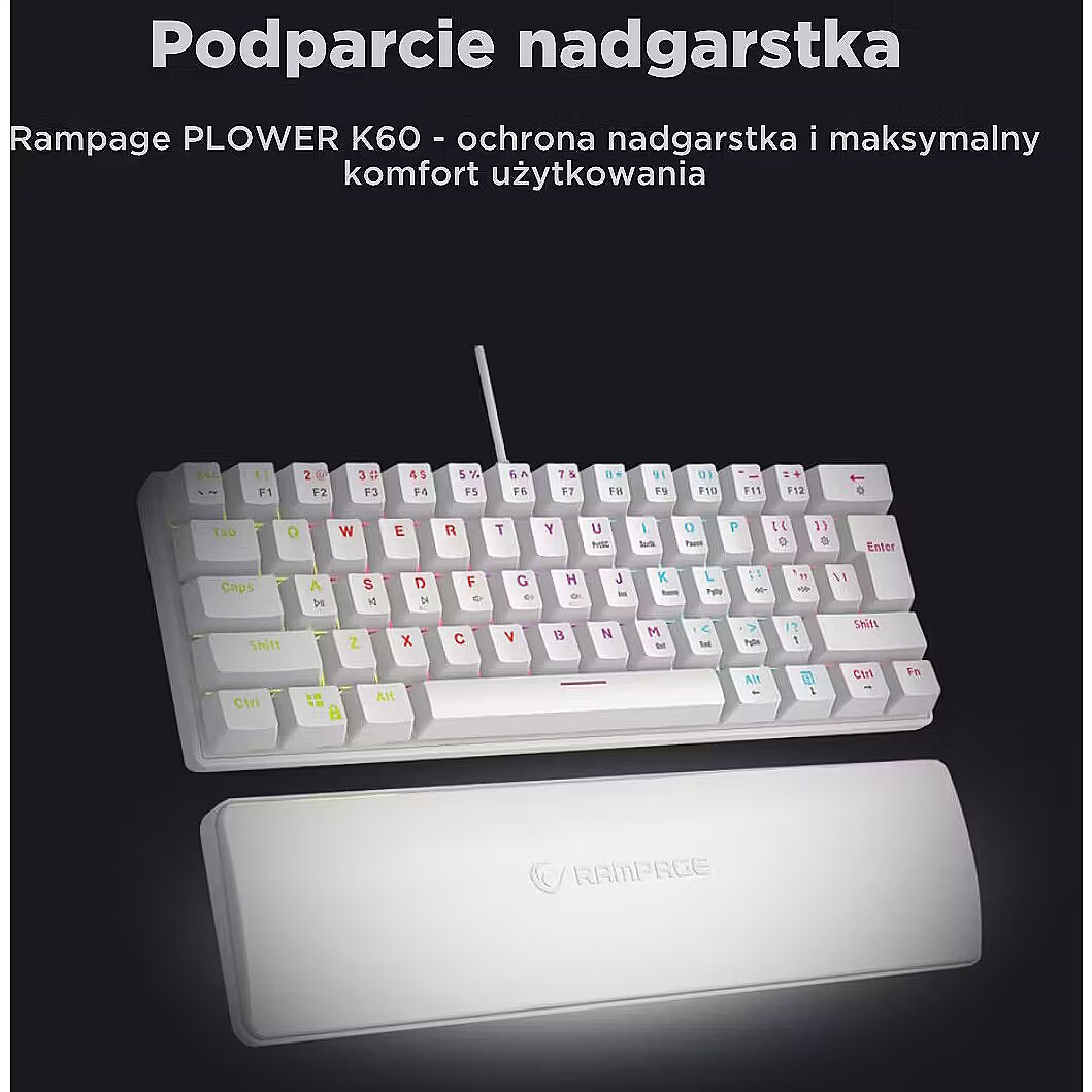 ShortDescription - Rampage Klawiatura Mechaniczna PLOWER K60 WHITE RGB biała