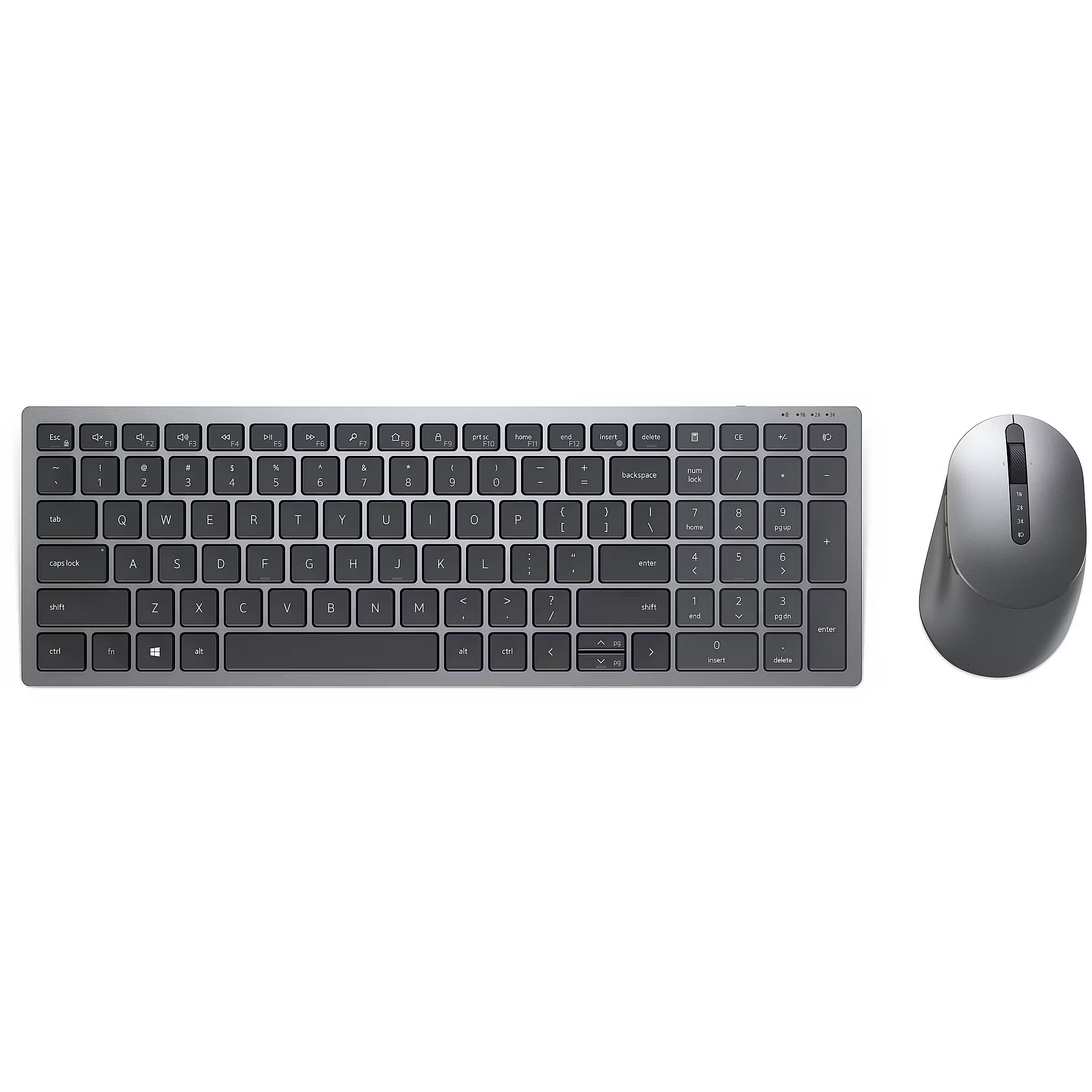 ShortSummaryDescription - DELL Pro Plus Compact Keyboard and Mouse - KM7120W - Russian (QWERTY), Full-size (100%), Wireless, RF Wireless + Bluetooth, QWERTY, Grey, Titanium, Mouse included