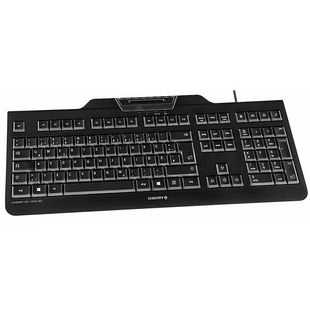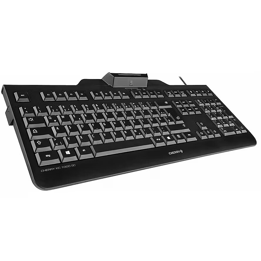 LongSummaryDescription - CHERRY KC 1000 SC. Keyboard form factor: Full-size (100%). Keyboard style: Straight. Connectivity technology: Wired, Device interface: USB, Keyboard layout: QWERTZ, Keyboard number of keys: 109. Cable length: 1.8 m. Recommended usage: Service. Product colour: Black