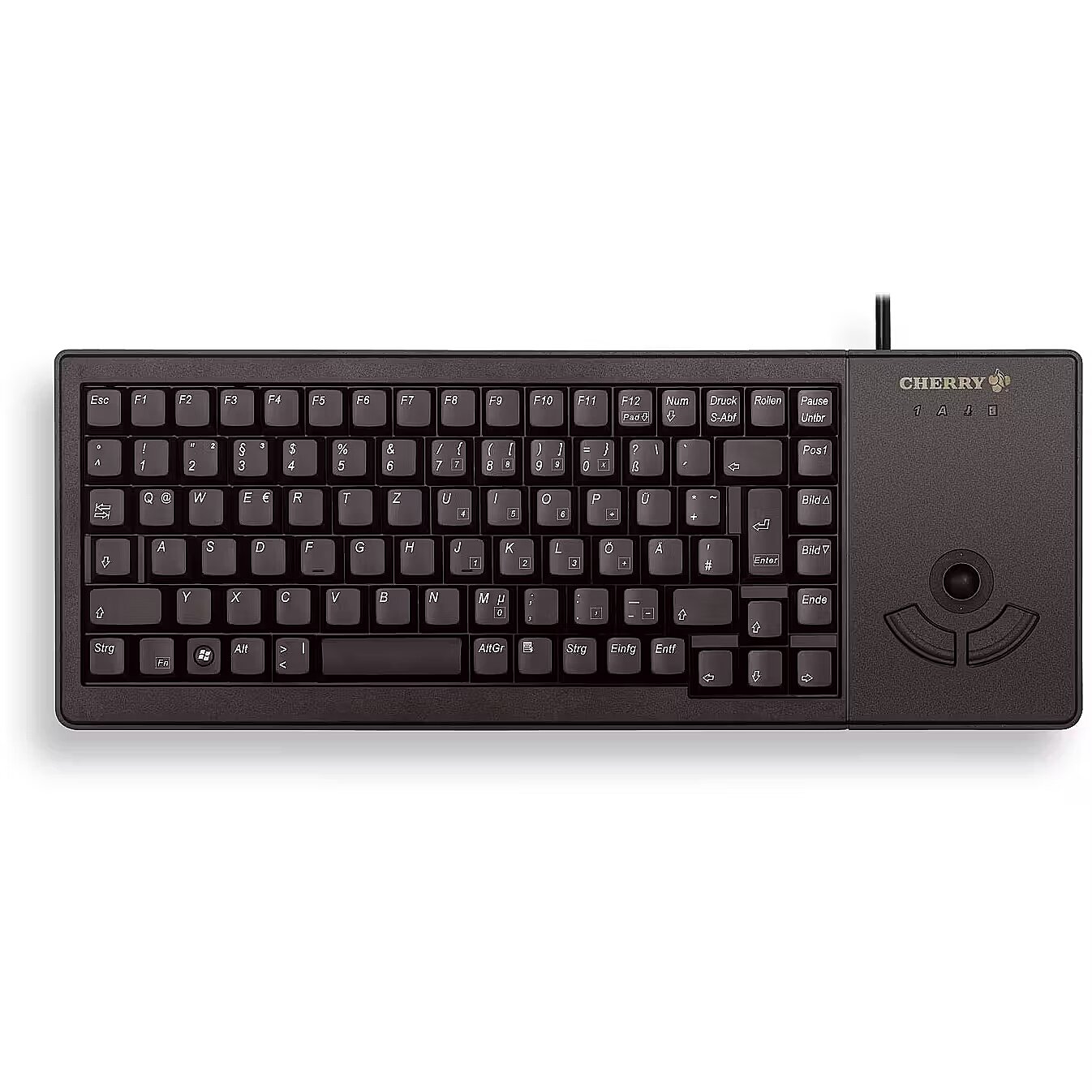 ShortSummaryDescription - CHERRY G84-5400 TRACKBALL KEYBOARD Corded, USB, Black, (QWERTY - UK), Full-size (100%), Wired, USB, Black