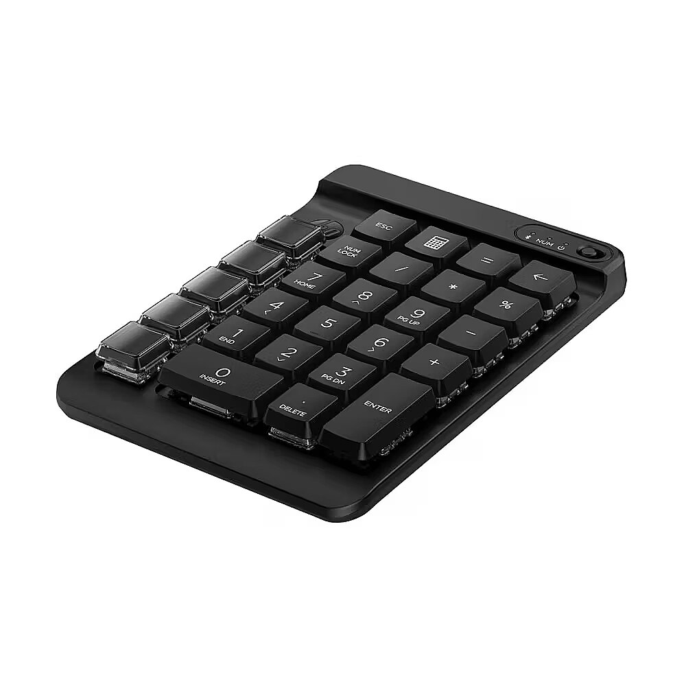 LongDesc - Complete control. Completely customizable.Get more than numbers out of your keypad. The HP 430 Programmable Wireless Keypad is fully customizable[1], to give you full control. Besides the standard numpad layout, a column of five blank keys can be configured as you see fit. In fact, this keypad has nine programmable keys with swappable keycaps for an endless array of workflow options.