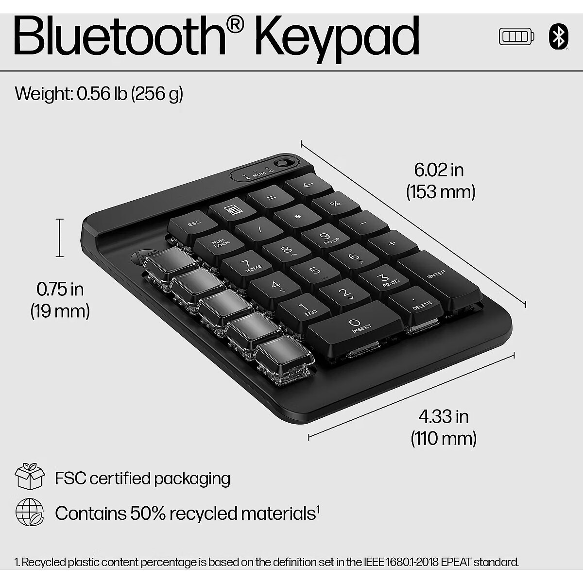 ShortSummaryDescription - HP 430 Programmable Wireless Keypad, Wireless, Bluetooth, Mechanical, Black