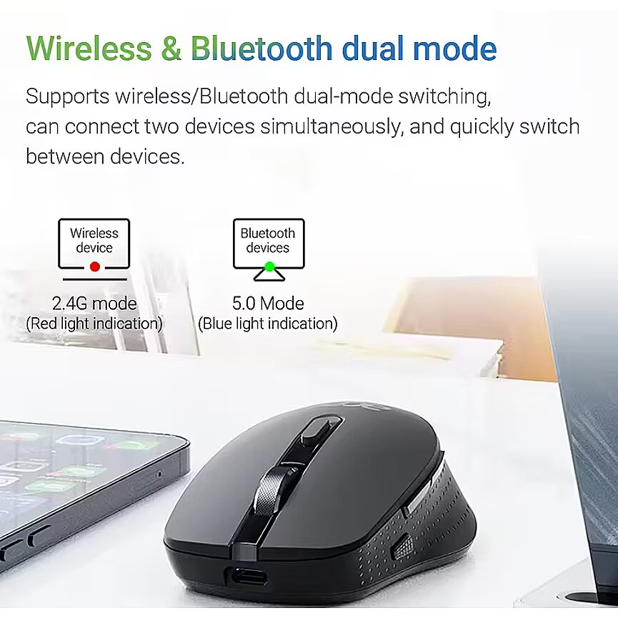 Compatibility: Windows, iOS, and other operating systems The mouse is made from an aluminum alloy with a metallic scroll wheel, providing durability and an elegant appearance. Its compact and lightweight design ensures comfort during extended use. Intelligent power-saving features, including preset power switches and sleep mode, effectively extend the battery life.
