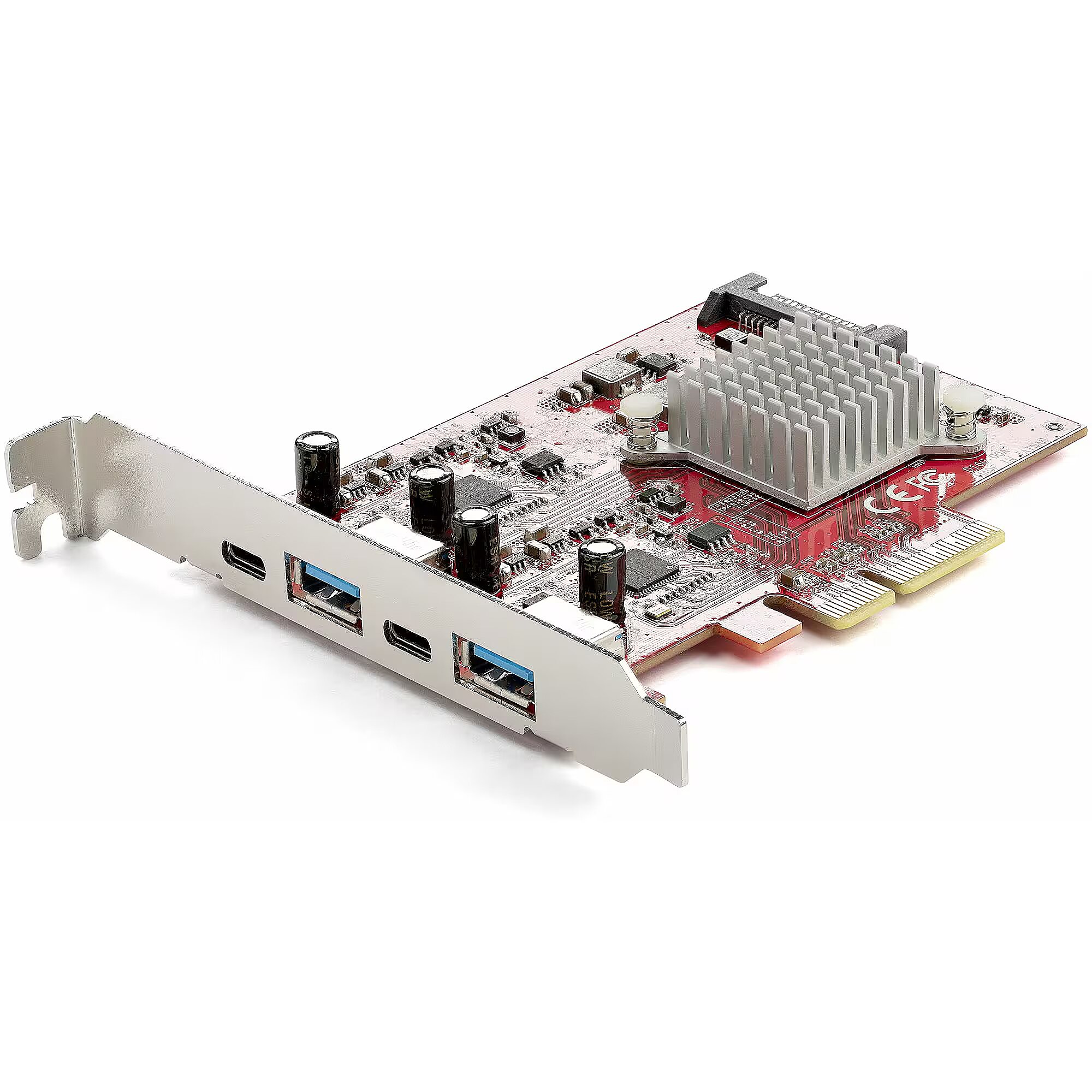 ShortSummaryDescription - StarTech.com 4-Port USB PCIe Card - 10Gbps USB PCI Express Expansion Card w/ 2 Controllers - 2x USB-C & 2x USB-A ports (USB 3.2/3.1 Gen 2) - USB/USB-C PCI-e Card - Full Profile, PCIe, USB 3.2 Gen 2 (3.1 Gen 2), PCIe 3.0, Red, ASMedia - ASM3142, ASMedia - ASM2806, 10 Gbit/s