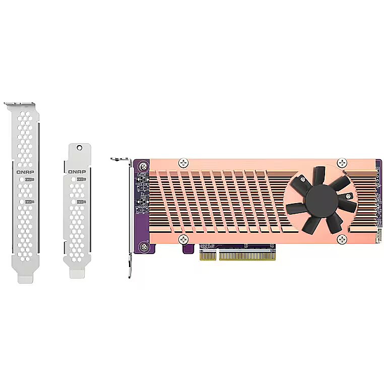 LongDesc - Add two M.2 NVMe SSDs to your NAS with a PCIe 3.0 expansion card.PCIe 3.0PCIe Gen 3 x4 provides up to 32 Gbps transfer speeds to your NAS.Ready-to-useNo drivers or extra software are required. SSD cache & volumeConfigure SSD caching, an SSD volume, or Qtier (QNAP’s auto-tiering technology) to improve overall NAS performance. Efficient cooling moduleKeeps your SSDs cool and maintains high performance.Tool-less designEasily install M.2 SSDs in your NAS with a screw-less, easy-to-use locking method.LED indicators & thermal sensors Monitor the real-time status and temperatures of the M.2 SSDs.Fast, efficient, and easy-to-useThe efficient architecture of the QM2-2P-344A allows you to easily install NVMe SSDs and maximize their performance with a quiet cooling module.SSD cachingEnable SSD caching to optimize system performance and reduce I/O latency. Caching is especially ideal for IOPS-demanding applications such as virtual machines and systems with a large number of small files.QtierAlternatively, you can set up Qtier auto-tiering to your NAS to improve overall system performance and maximize storage utilization.Keep SSD coolA quiet cooling module (heatsink and smart fan) keeps your SSDs running with dependable high performance.Super-fast NVMe SSD storage volumePhotographers and videographers can tackle high-resolution RAW multimedia editing directly on NVMe SSD volumes. RAID configurations can help prevent data loss from drive failure.