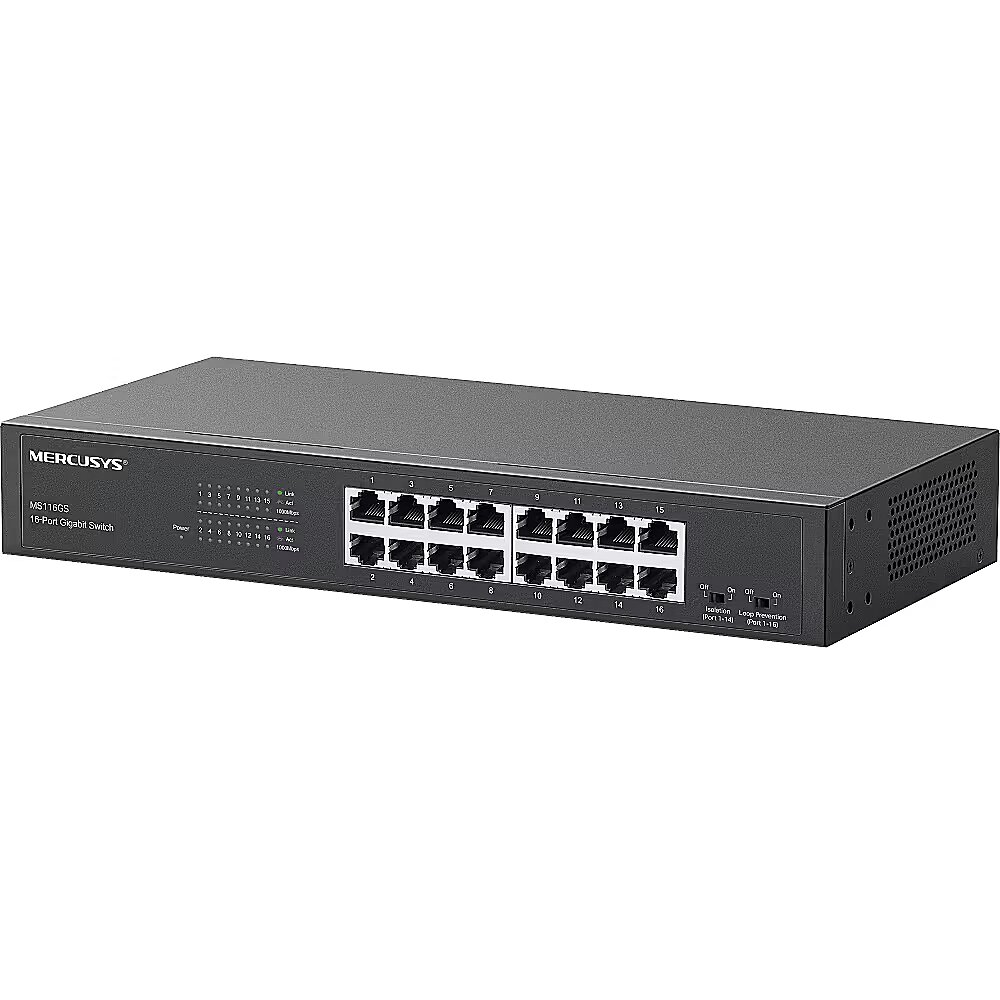 Description - 16-Port Gigabit Desktop/Rackmount Switch Full Gigabit Ports: 16× 10/100/1000 Mbps Auto-Negotiation RJ45 port supporting Auto-MDI/MDIX Plug and Play: Simple to use and saves time and effort Isolation Mode: Isolation Mode allows one-click client traffic separation for higher security and performance Loop Prevention: Monitor and address loop-related issues within your network structure to prevent disruptions caused by looping Durable Metal Casing: Allows for efficient heat dissipation and long network life