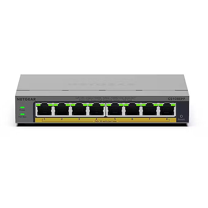 Title - NETGEAR GS108EPP Unmanaged Gigabit Ethernet (10/100/1000) Power over Ethernet (PoE) Desktop/Wall-Mounting Grey
