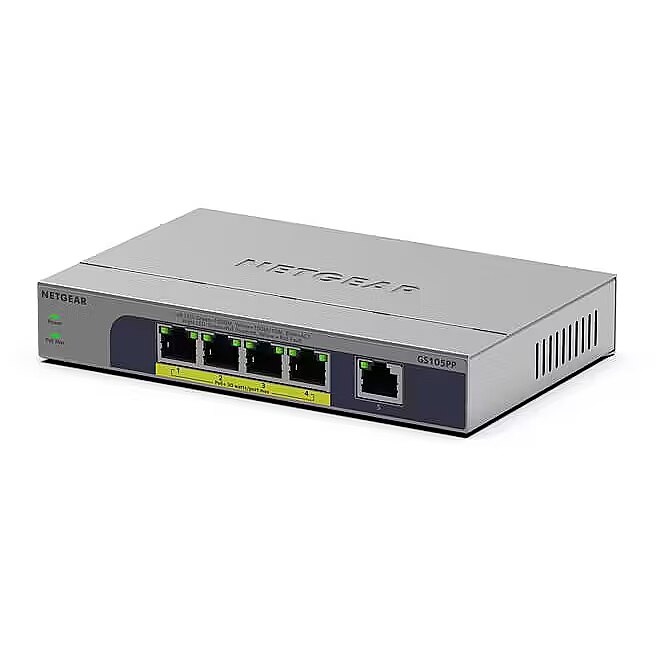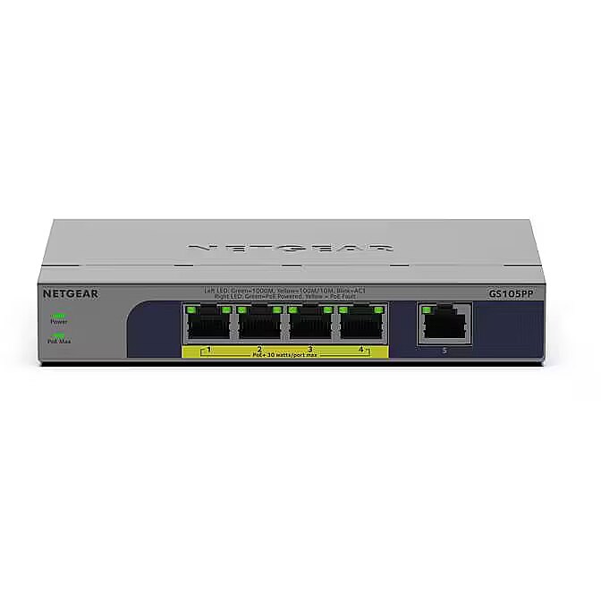 Title - NETGEAR GS105PP Unmanaged Gigabit Ethernet (10/100/1000) Power over Ethernet (PoE) Desktop/Wall-Mounting Grey