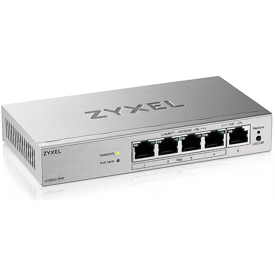 Zyxel GS1200-5HP V3, 5 PORT GIGABIT POE+ WEBMANAGED DESKTOP SWITCH, 4X POE, 68 WATT