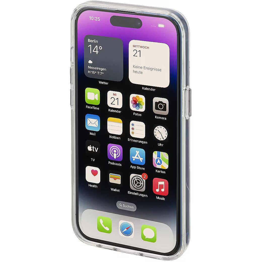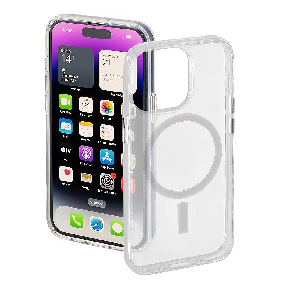 LongDesc - The unobtrusive bodyguard for your iPhone 14 ProOur "MagCase Safety" CoverTransparent, high-quality, stylish – this clear case protects your iPhone from dirt, scratches and impacts without concealing the unique design. The special outer material is particularly durable: It absorbs shocks, distributes vibrations evenly and protects the smartphone from damages. The protective case has been specially designed for the Apple iPhone 14 Pro. Thanks to the integrated magnetic ring, it also supports wireless charging. In addition, the iPhone can be attached to magnetic holders without removing the phone case.Reliable protection from scratches and impactsYou’re in a hurry and quickly throw the most important things into your handbag: wallet, phone, keys. You hear a scraping noise – the front door key has scraped across the smartphone and there is now a scratch on the sensitive housing. With the robust "MagCase Safety" back cover, this cannot happen!The flexible case made of durable TPU protects the fragile back glass of your iPhone. The shock-absorbing material distributes the vibrations of an impact evenly, and helps to prevent damage. Your smartphone is then perfectly equipped for day-to-day life, and you don’t have to worry about sharp objects or clumsy children’s hands.See me, feel me, touch me!Unser Handycover im angesagten See-Through-Design schützt Ihr Smartphone, ohne dabei den individuellen Look Ihres iPhones zu verdecken. Im Gegenteil: Das kristallklare Material bringt die edlen Farben und die Marke stilvoll zur Geltung.Im Unterschied zu anderen Hüllen fühlt sich das Hama Cover "MagCase Safety" weder unangenehm rau an, noch ist es so glatt, dass Ihnen das Handy jeden Moment aus der Hand zu rutschen droht. Das ausgewählte Material ist hochwertig verarbeitet und mit seiner rutschhemmenden Oberfläche angenehm griffig.iPhone + MagCase: The perfect matchWhen developing the cover, we made sure that all buttons and all connections are fully usable with the case on. Furthermore, Apple’s innovative MagSafe technology is supported. Thanks to the magnetic ring integrated in the back cover, the phone case is compatible with all original Apple MagSafe products and with our Hama MagLine products. So when you’re on the go, you can attach your smartphone to a MagSafe car holder, for example, or charge your phone on a magnetic charger using inductive technology.