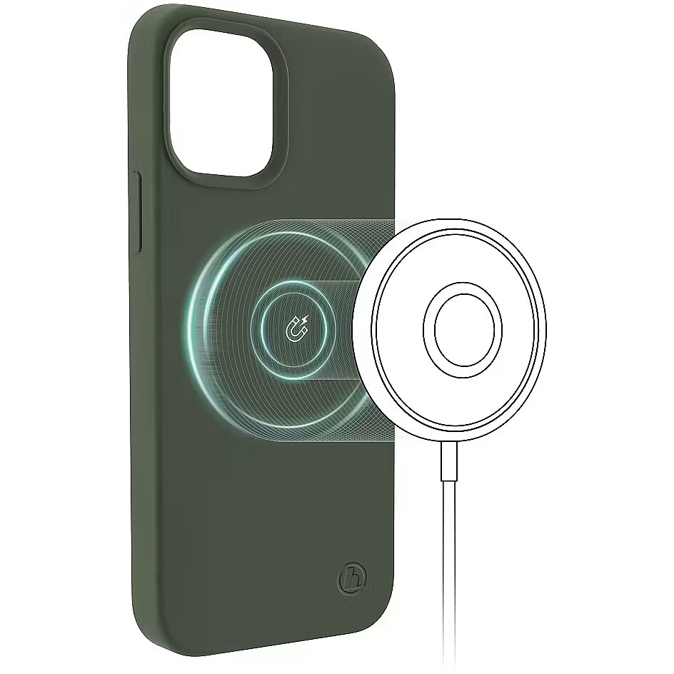 Description - "MagCase" is specially designed for the iPhone 12/12 Pro. The magnetic ring integrated into the case enables the use of MagSafe technology, enabling fast wireless charging. The rich, green cover with a soft inner lining reliably protects your smartphone. The built-in, perfectly adapted magnetic ring enables wireless charging of your iPhone 12 or 12 Pro Perfect automatic positioning optimized for wireless chargers Strong protection for your mobile phone: the silicone phone case protects your iPhone from impacts and scratches The case is compatible with all original Apple MagSafe and Hama MagLine products Flexible case with an especially soft and pleasant to the touch finish The non-slip silicone surface lies securely and comfortably in the hand Soft inner lining to protect the sensitive surface of the device's housing