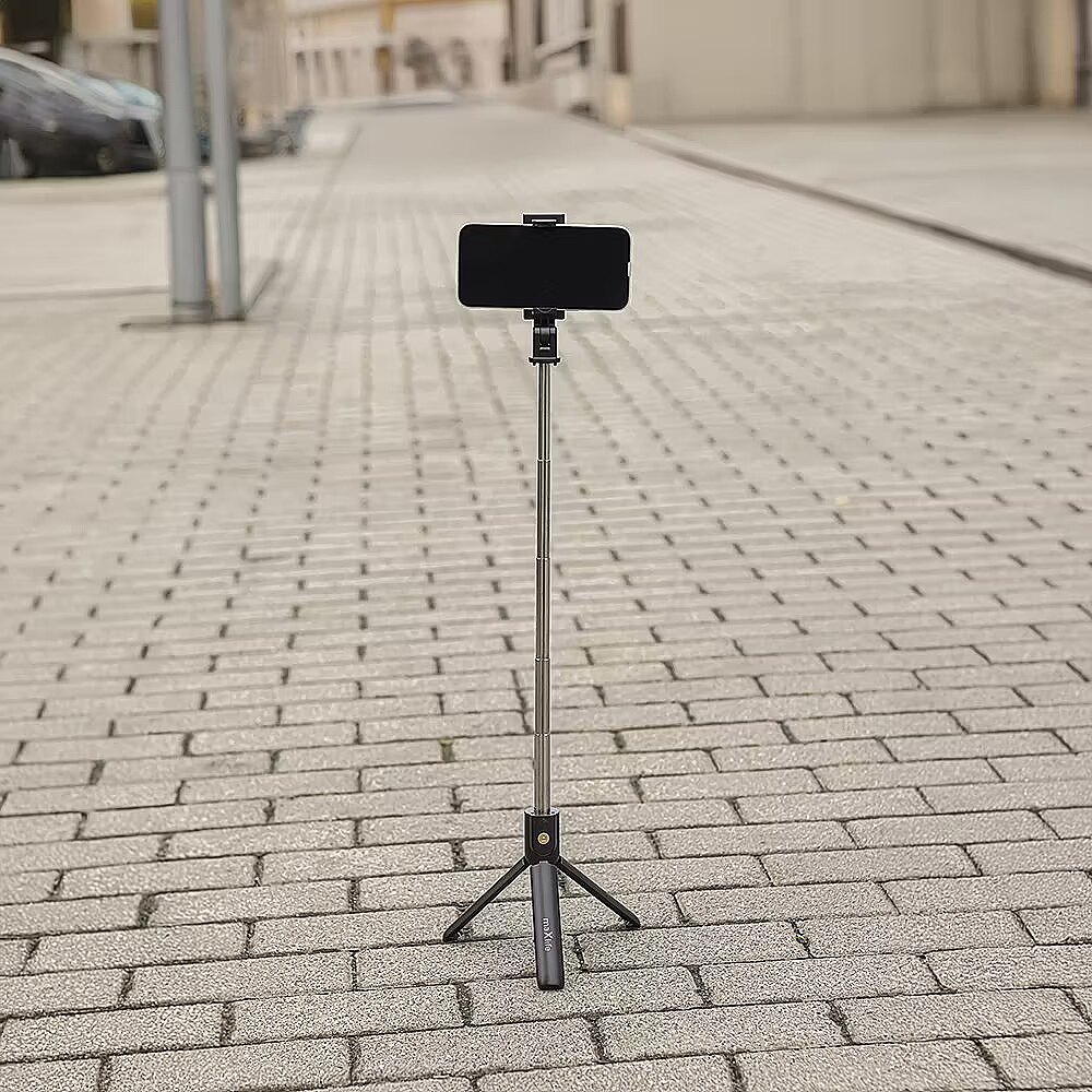 description_short_en - Two-in-one tripod and hand tripod Bluetooth connection & a remote control Extends to a length of 69 cm 360° rotatable phone holder Suitable phone width: 64–87 mm