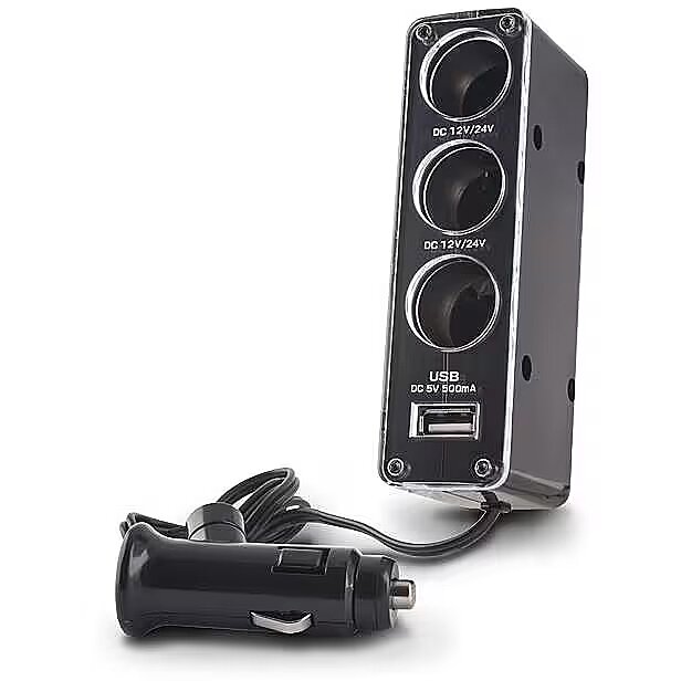 description_lv - Auto piepīpētaja ligzdas sadalītājs uz 3 ligzdam un vienu USB ligzdu mobīlo ierīču uzlādei. Savietojams ar 12 / 24V strāvu. Vads 60 cm garš.