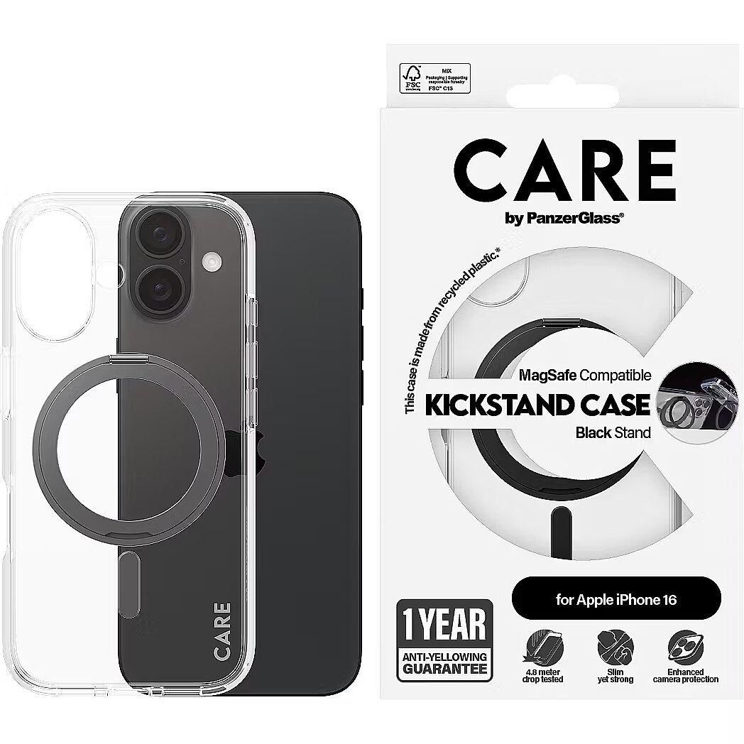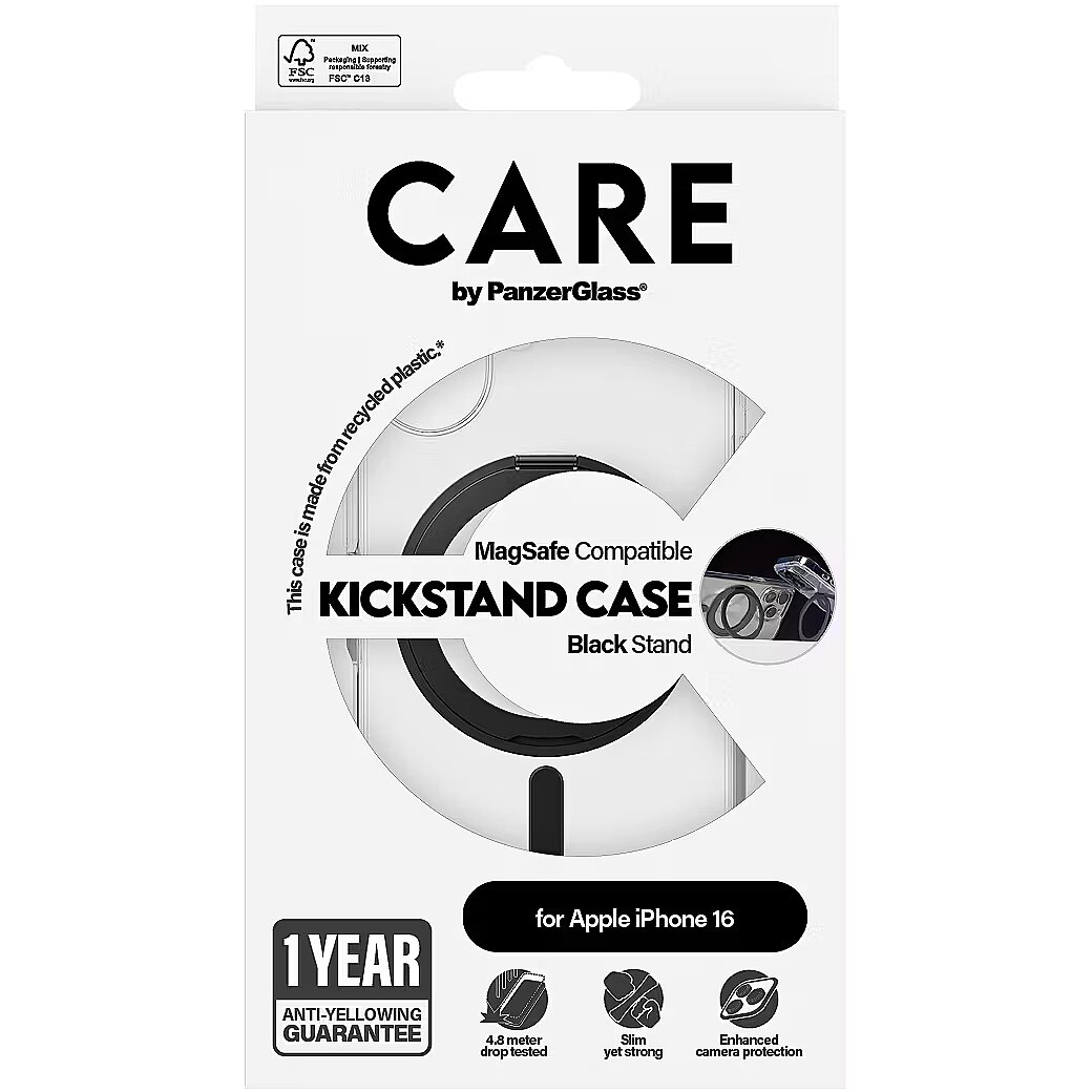 ProductName - CARE by PanzerGlass® Feature Case Transparent w. Black Kickstand & MagSafe iPhone 16