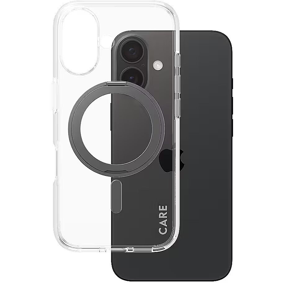 LongProductName - CARE by PanzerGlass® Feature Case Transparent w. Black Kickstand & MagSafe iPhone 16