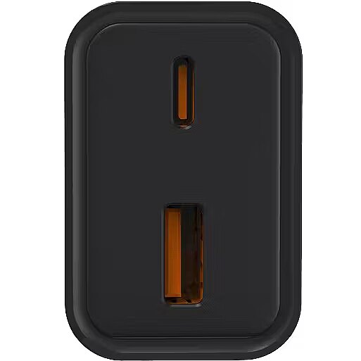 Other features - Moc: 30 W Napięcie wejściowe: 100-240 V~50/60 Hz 0.8 A Porty: 1 × USB-C, 1 × USB-A Parametry wyjściowe USB-C: 5 V 3 A, 15 W; 9 V 3 A, 21 W; 12 V 2.5 A, 30 W; Parametry wyjściowe USB-A: 5 V 3 A, 15 W; 9 V 2 A, 18 W; 12 V 1.5 A, 18 W; Średnia sprawność podczas pracy: Minimum 83.23% (dla 115 V), 79.55% (dla 230 V) Zużycie energii w stanie bez obciążenia: Maksymalnie 0.097 W (dla 115 V), 0.103 W (dla 230 V) Jednoczesne ładowanie: 5 V+5 V 3 A, 15 W; PPS: 5-11 V 2.75 A (13.75-30.25 W) Szybkie ładowanie USB-C: PD3.0, PD2.0, QC3.0, QC2.0, PPS, FCP, BC1.2 USB-A: QC3.0, QC2.0, FCP, BC1.2 Zgodność z rozporządzeniem komisji (EU) 2019/1782