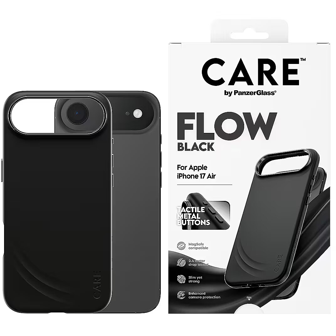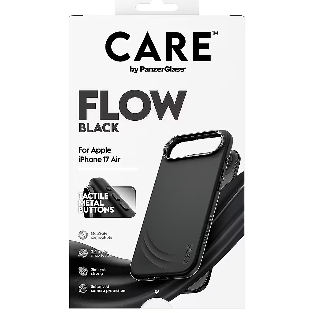LongSummaryDescription - PanzerGlass CARE by ® Feature FLOW Case Black w. MagSafe iPhone Air. Case type: Cover, Brand compatibility: Apple, Compatibility: Apple - iPhone Air, Surface coloration: Monochromatic, Product colour: Black