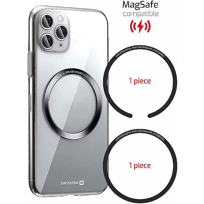 description_ru - Набор клейких металлических колец для совместимости зарядки с Magsafe. Розничная упаковка SWISSTEN. МагСейф