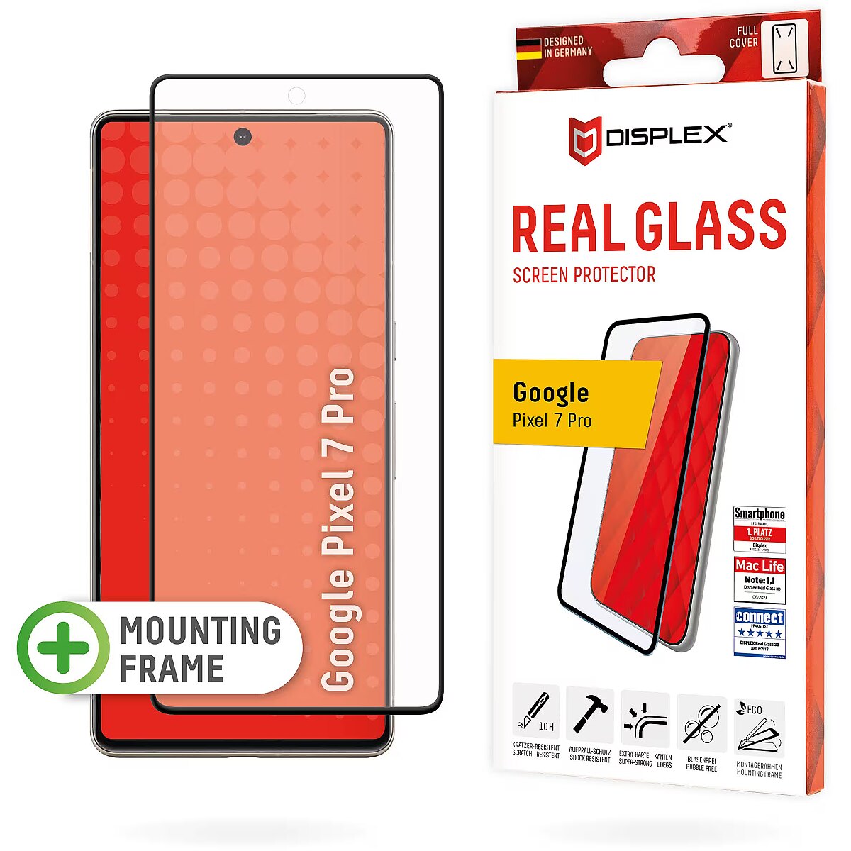 LongProductName - DISPLEX Full Cover Screen Protector (10H) for Google Pixel 7 Pro, Eco Mounting Frame, full screen coverage, Tempered Glass, scratch resistant protective film, case friendly