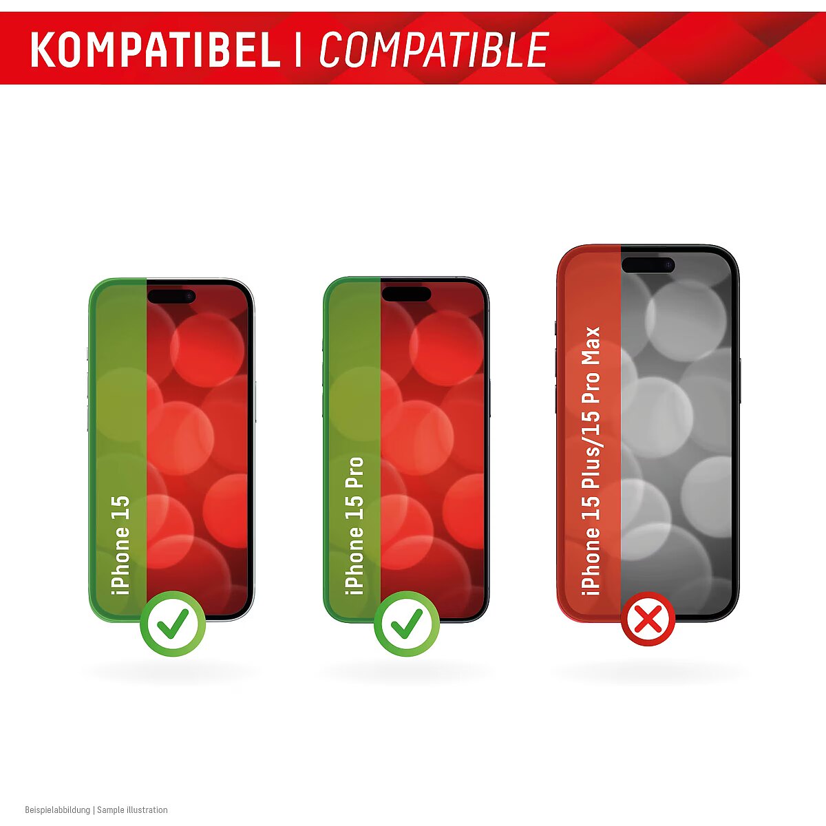 LongProductName - DISPLEX Full Cover Screen Protector (10H) for Apple iPhone 15/15 Pro, Eco Mounting Frame, full screen coverage, Tempered Glass, scratch resistant protective film, case friendly
