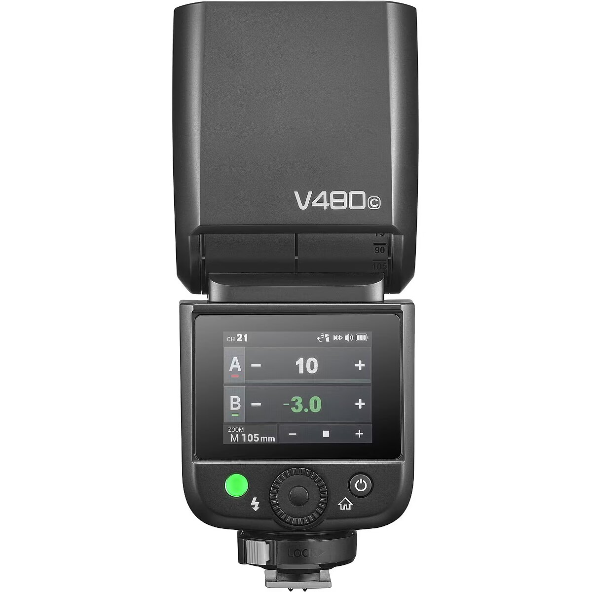 Meet the Godox V480: a sleek GN50 on camera flash that brings studio quality light wherever you shoot. Powered by a high capacity Li-ion battery delivering up to 650 fullpower flashes with a rapid 1.7s recycle, it offers both a responsive touchscreen and tactile buttons for intuitive control. With High speed sync up to 1/8000s, an integrated 2.4GHz X wireless system, and a 10 level LED modeling lamp, the V480 is the compact lighting solution for any creative pursuit. Intuitive Touchscreen & Buttons